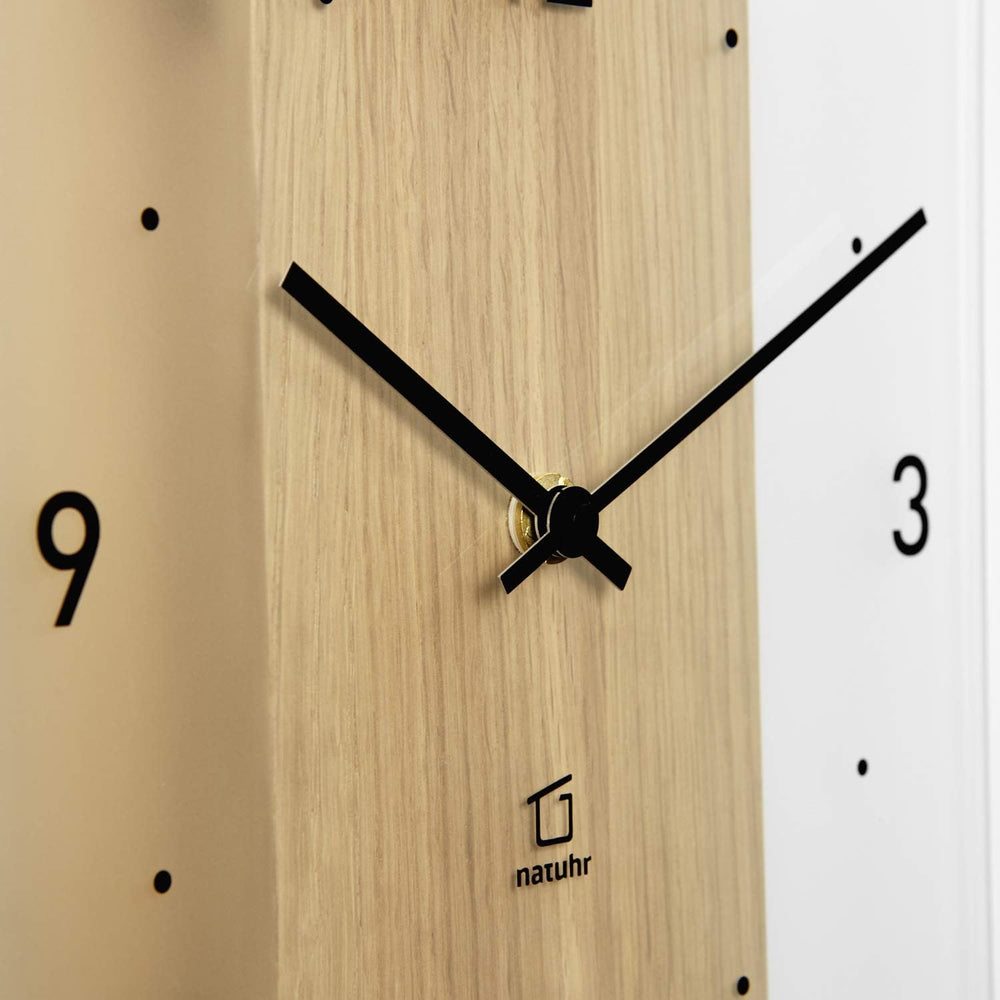 Natuhr Holzuhr Wanduhr Tischuhr Holz - Beam - geräuscharm Massivholz modern Design 17 x 17 cm (Eiche