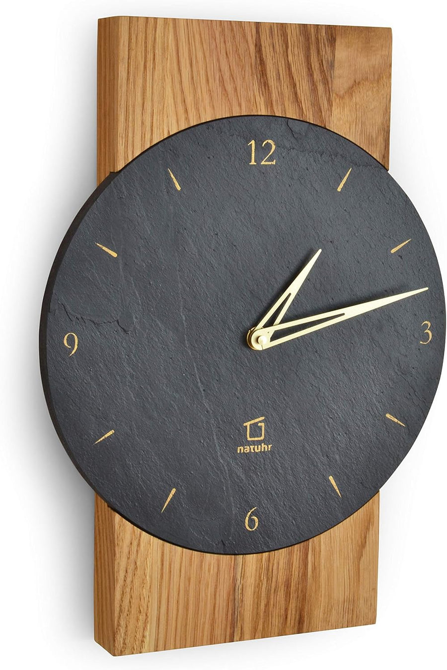 Natuhr Schiefer Wanduhr - Zugspitze - Holz Eiche Schiefer Stein geräuscharm Made in Germany (Heller