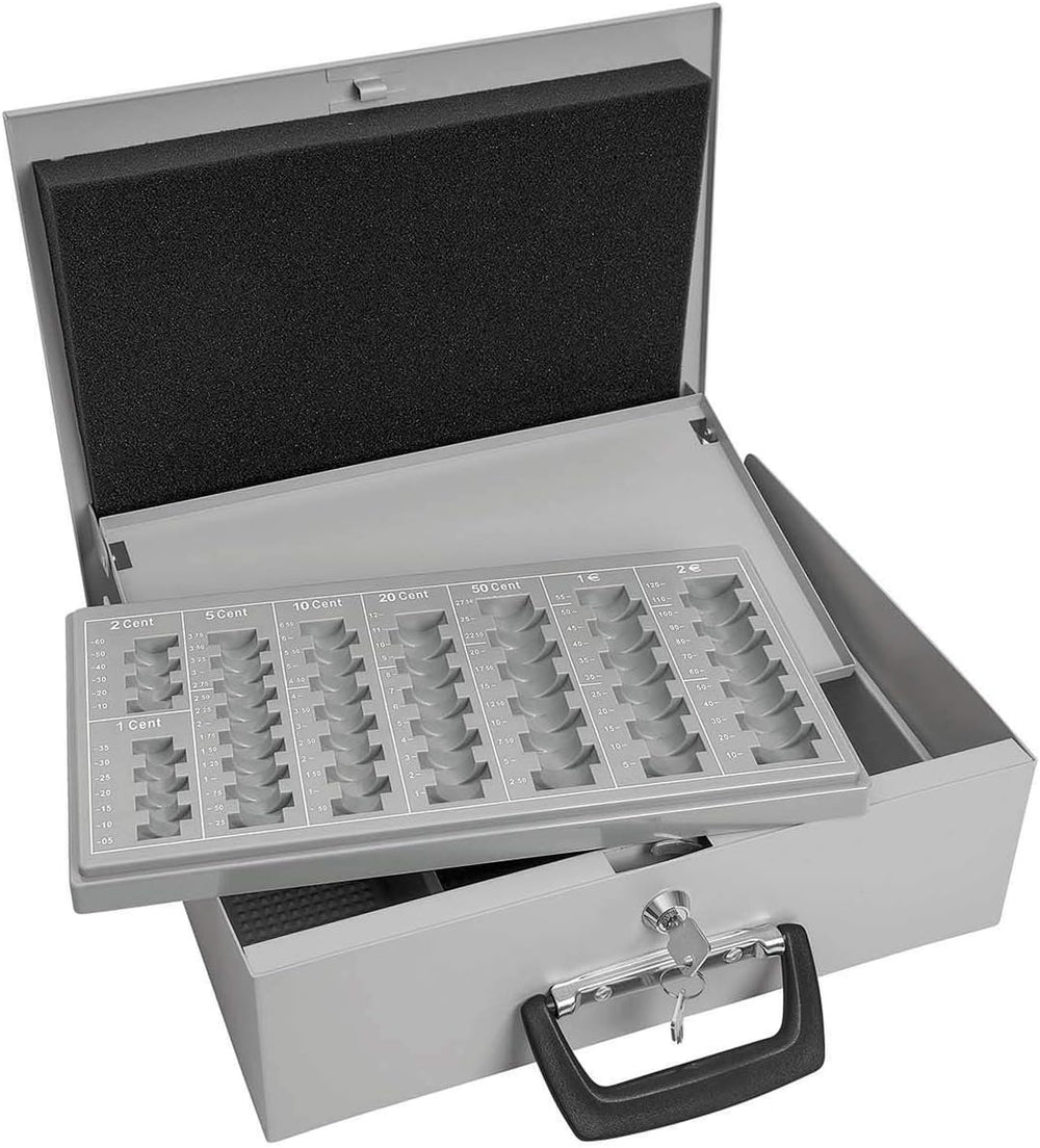 Wedo 150100801 Geldzählkassette Universa (aus Stahlblech, für Hart- und Papiergeld, mit zwei Tragegr