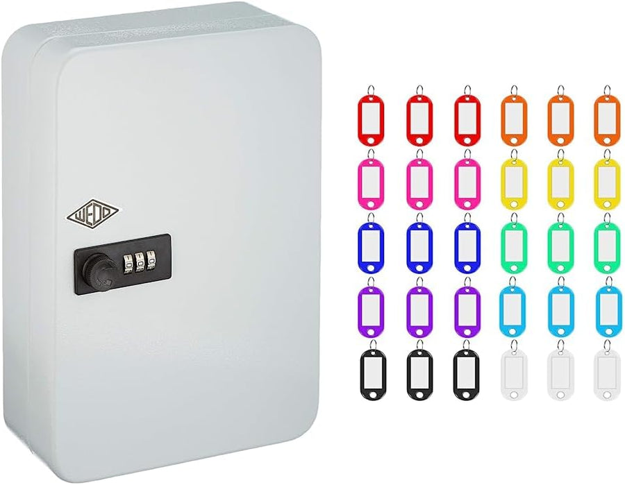 Wedo 10242437 Schlüsselschrank für 24 Schlüssel, 18,6 x 9,4 x 25 cm, Hellgrau & Schlüsselanhänger, 3