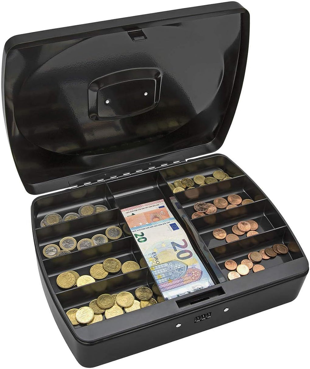Wedo 145303H Geldkassette (aus pulverbeschichtetem Stahl, versenkbarer Griff, Geldnoten- und Belegek