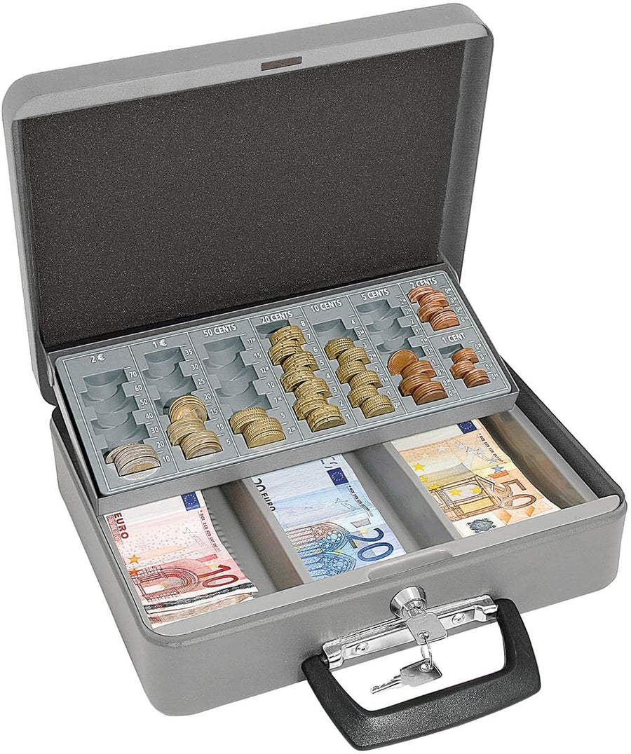 Wedo 145103H Geldkassette (aus pulverbeschichtetem Stahl, versenkbarer Griff, Geldnoten- und Belegek