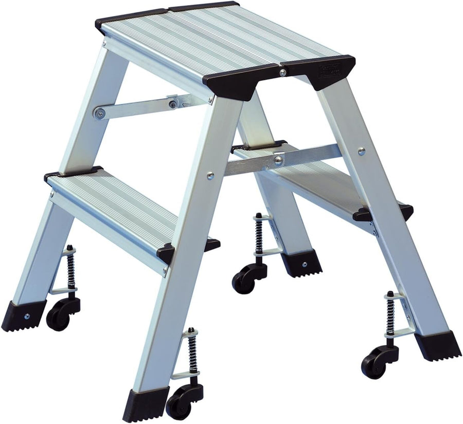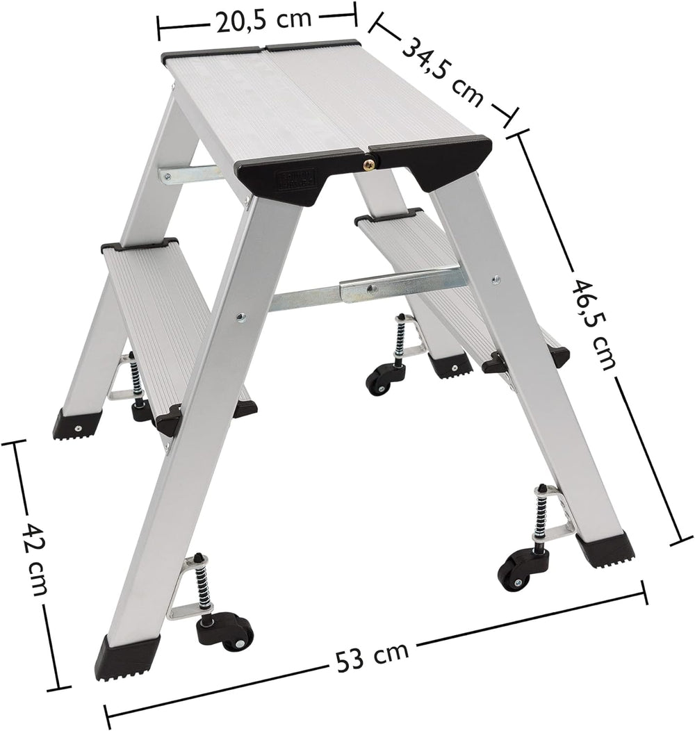 Wedo 2151 Mobile Trittleiter (aus AluMinium, (mit Rollen Tragkraft 150 kg, silber