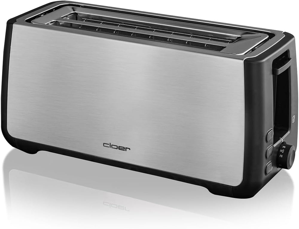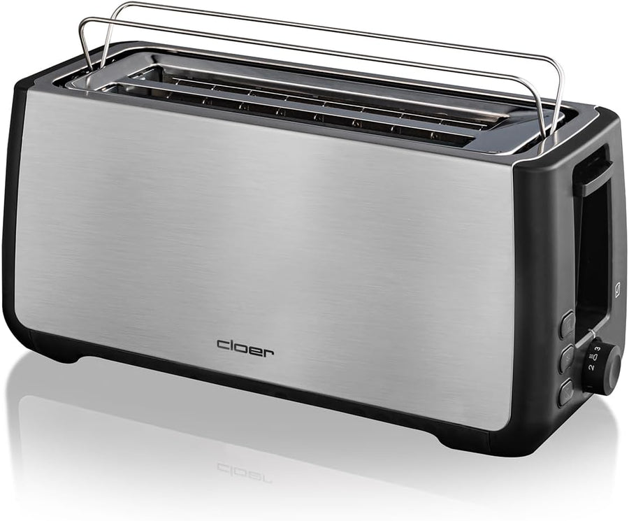 Cloer 3710 Langschlitztoaster für 4 Toastscheiben / 1380 W / integrierter Brötchenaufsatz / Nachhebe
