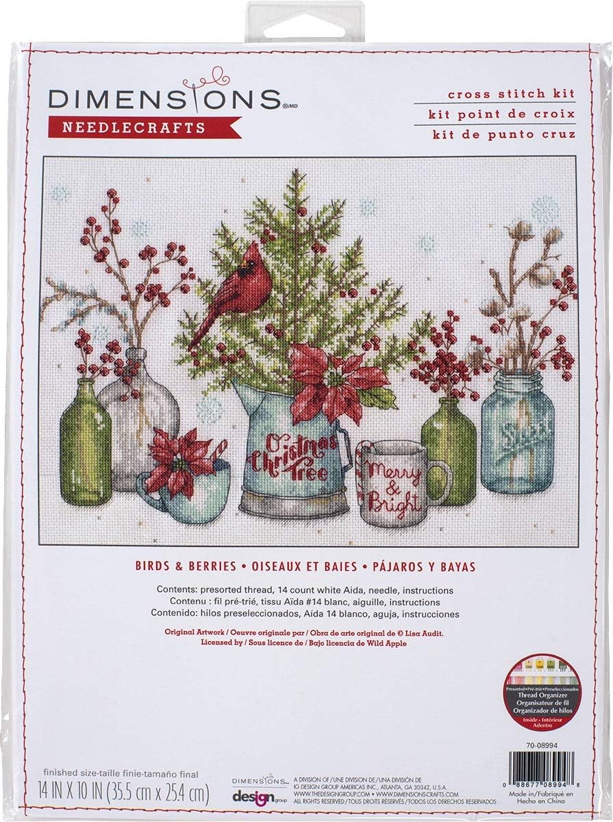 Dimensions 70-08994 Kreuzstich-Set, Motiv: Vögel und Beeren, Weihnachten, 35,6 x 25,4 cm, 14 Stück,