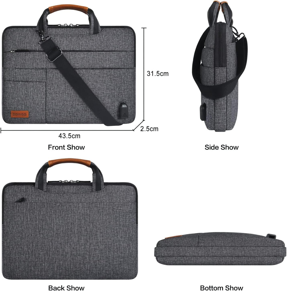 DOMISO 17 Zoll Wasserdicht Laptop Tasche Tragetasche Schultertasche Aktentasche mit USB Ladeanschlus
