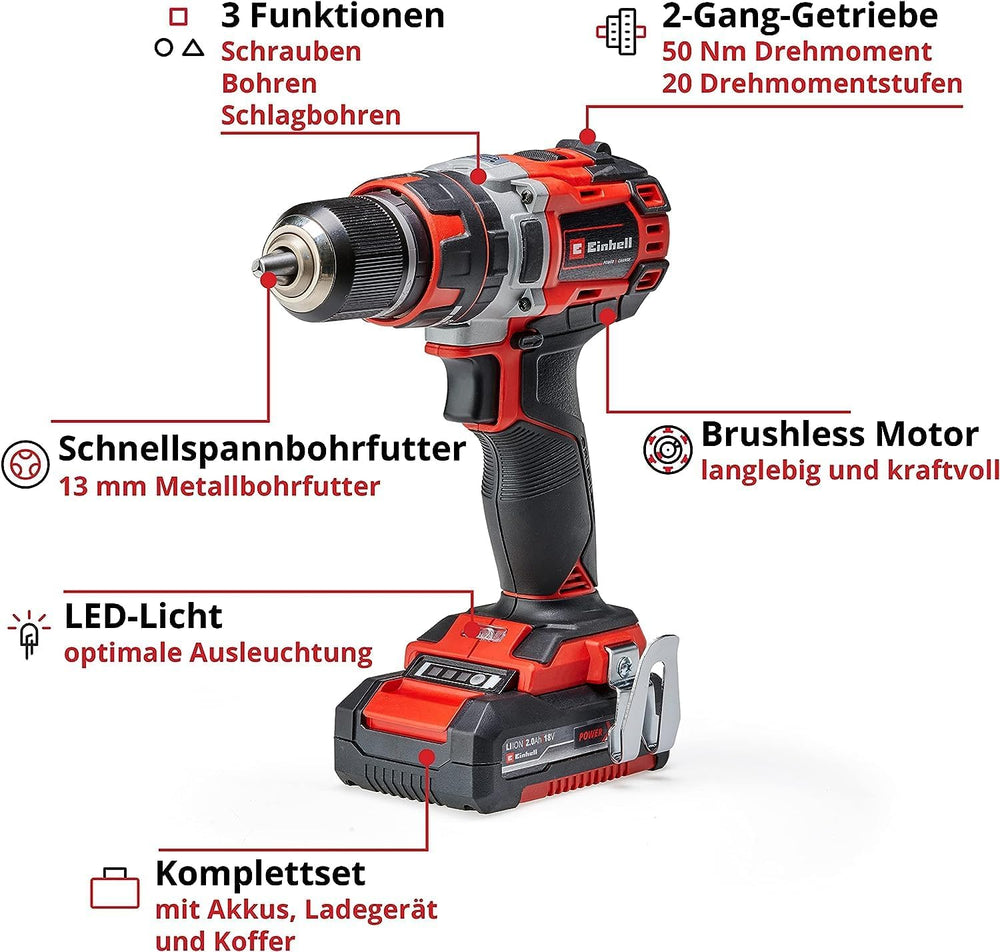Einhell 4513940 Akku-Schlagbohrschrauber TE-CD 18/50 Li-i BL PowerX-Change(Li-Ion,18V,50Nm,10mminBet