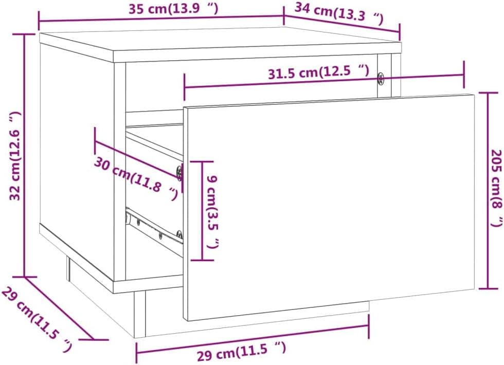 Bedside Table Nachtkonsole Beistelltisch mit Stauraum Night Stand Nachttisch Weiss 35x34x32 cm Massi