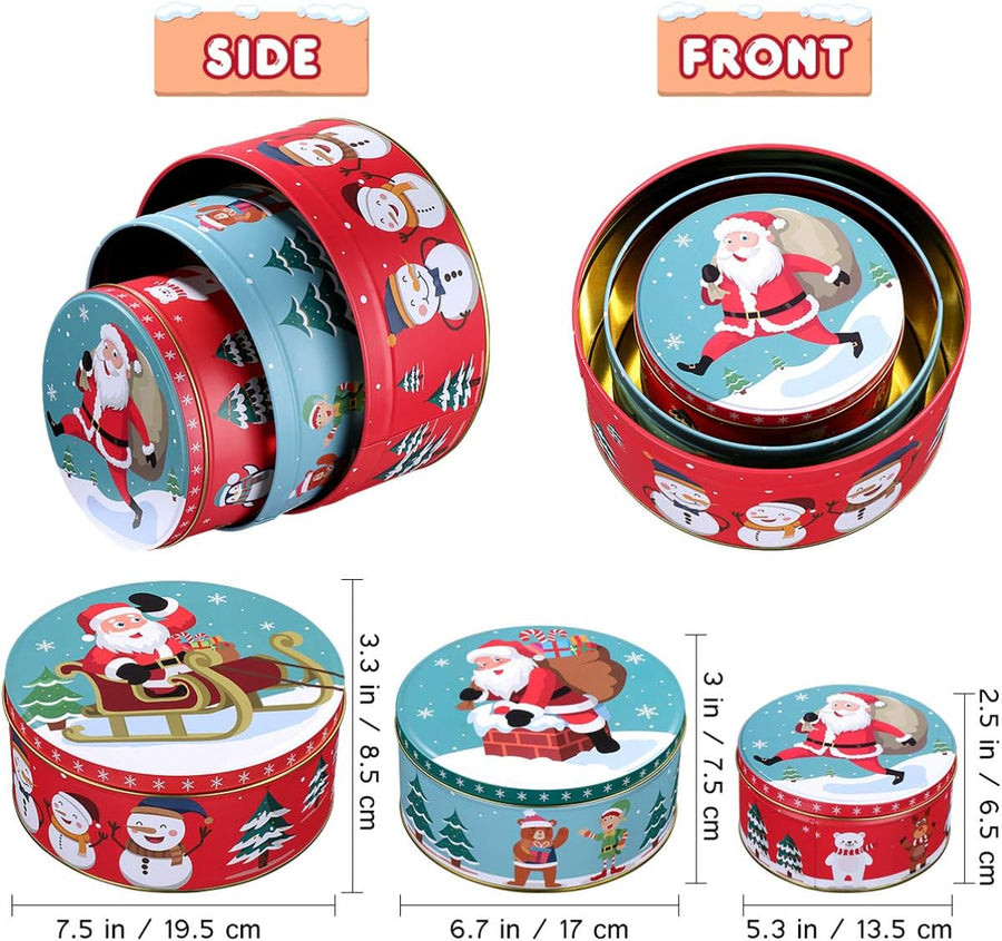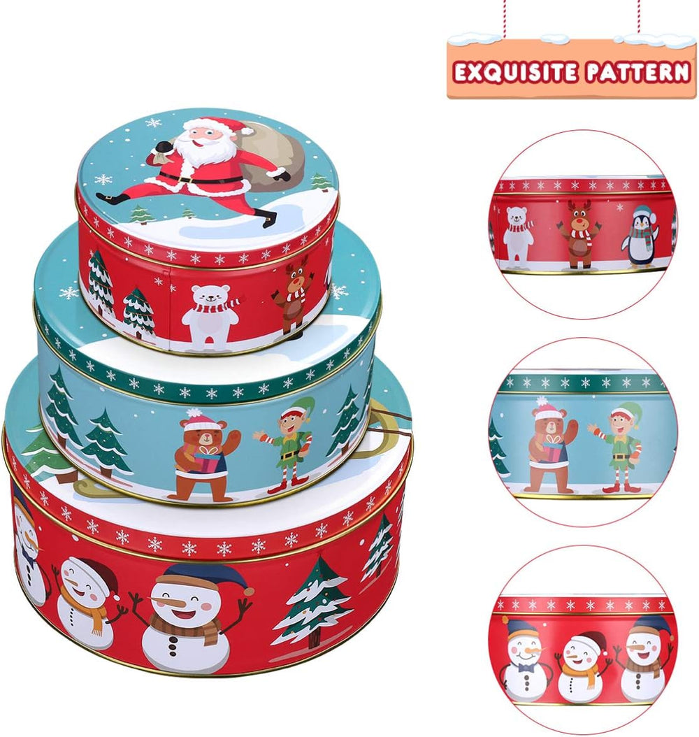 HEMOTON 3 Stück Plätzchendose Weihnachten Keksdose Weihnachtsdose Metalldosen Metall Rund Geschenkdo