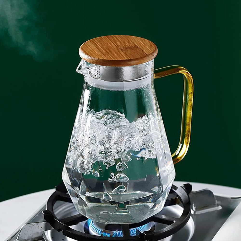 HEMOTON 2. 2L Glaskanne mit Holz Deckel Borosilikatglas Krug Eistee Kanne Glas Saftkrug Glaskrug Was