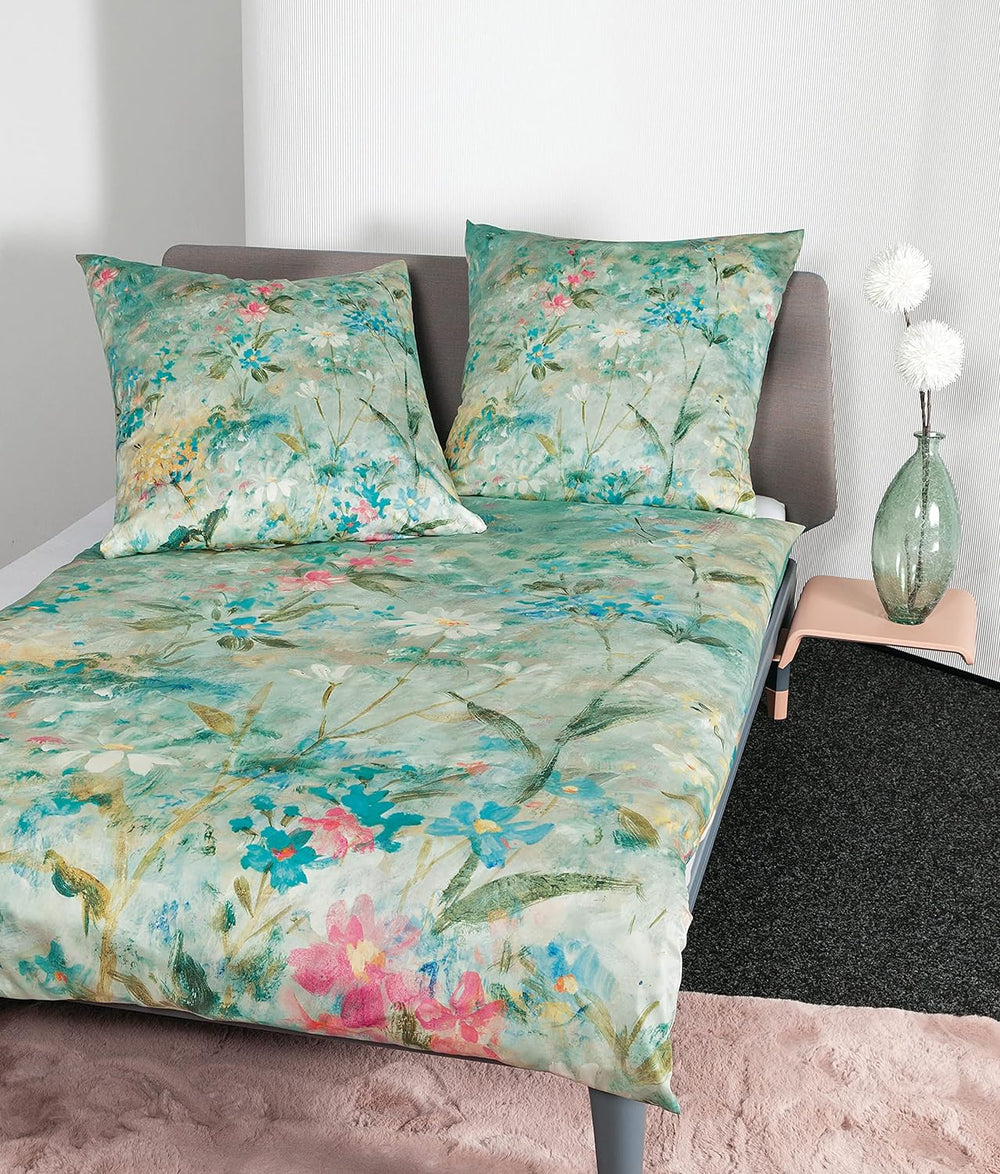 Janine Bettwäsche Mako-Satin J. D. 155x220 + 80x80 cm grünblau Salbei, 155x220 + 80x80 cm