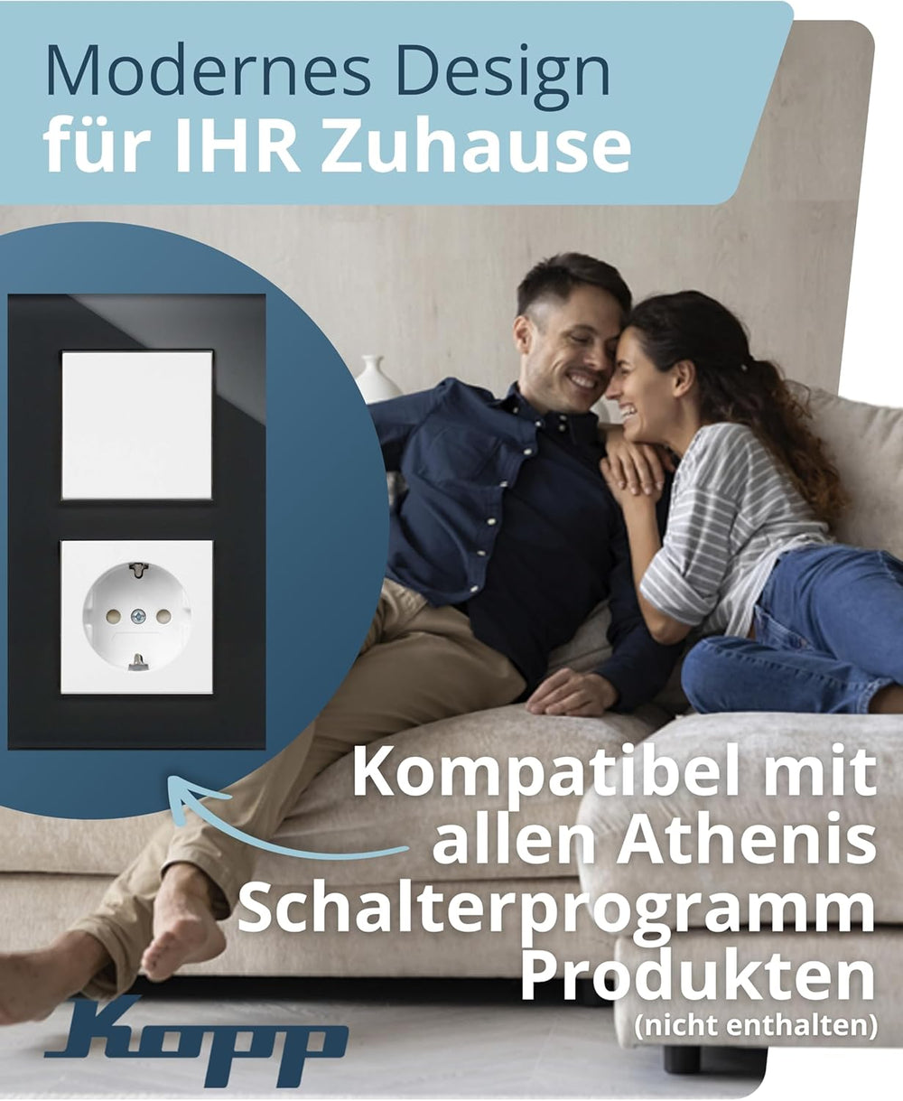 Kopp 405405011 2-Fach Echtglas-Rahmen schwarz Abdeckrahmen, Glas Schwarz 2-fach Schwarz, 2-fach Schw