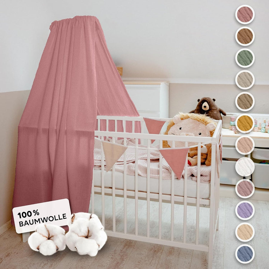lilimaus Betthimmel Babybett [in 12 Farben] Himmel Babybett aus 100% Baumwolle Musselin - Betthimmel