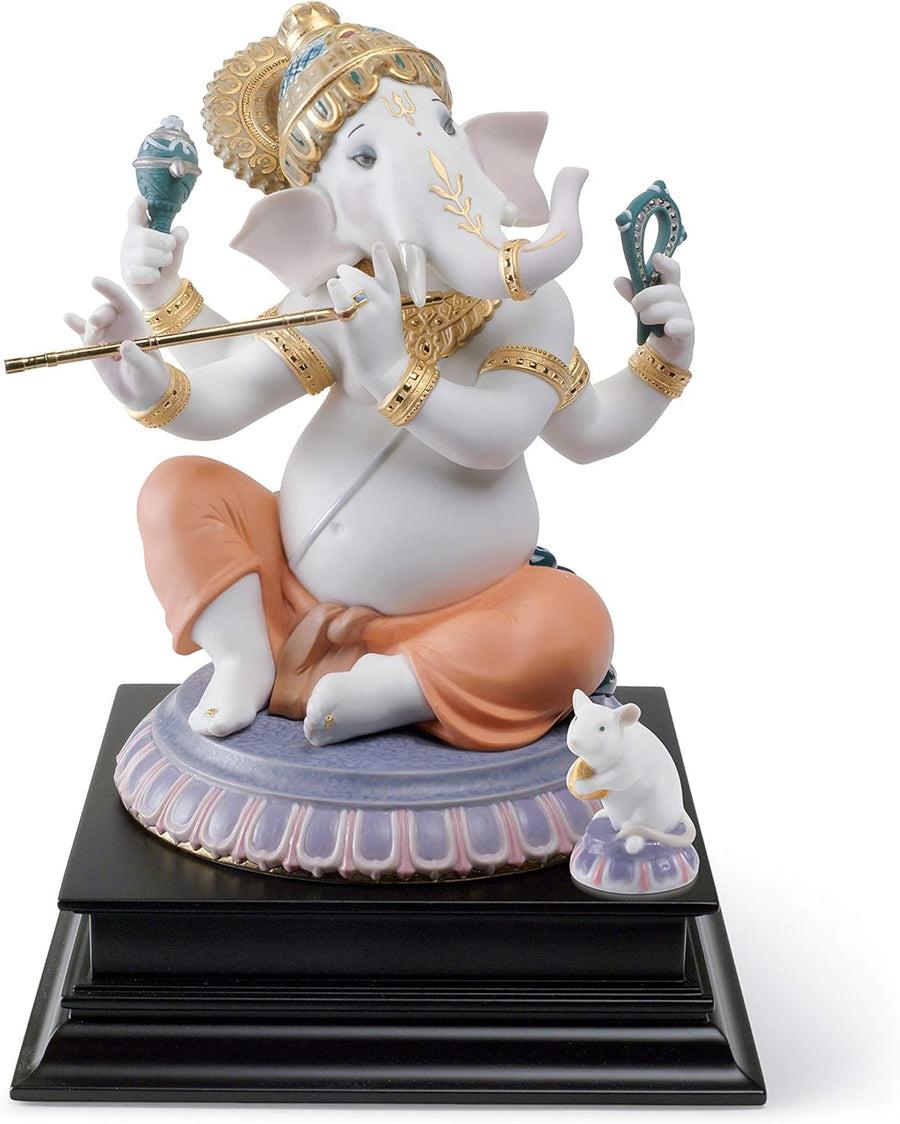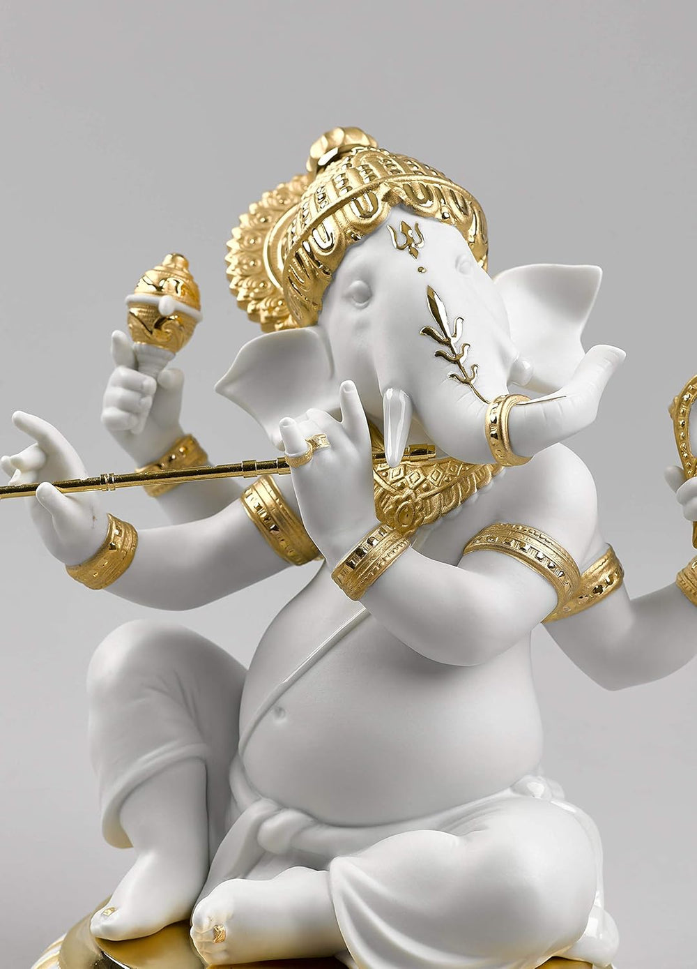 LLADRÓ Figur Ganesha Mit Bansuri. Gold. Ganesha Mit Bansuri. Porzellan.