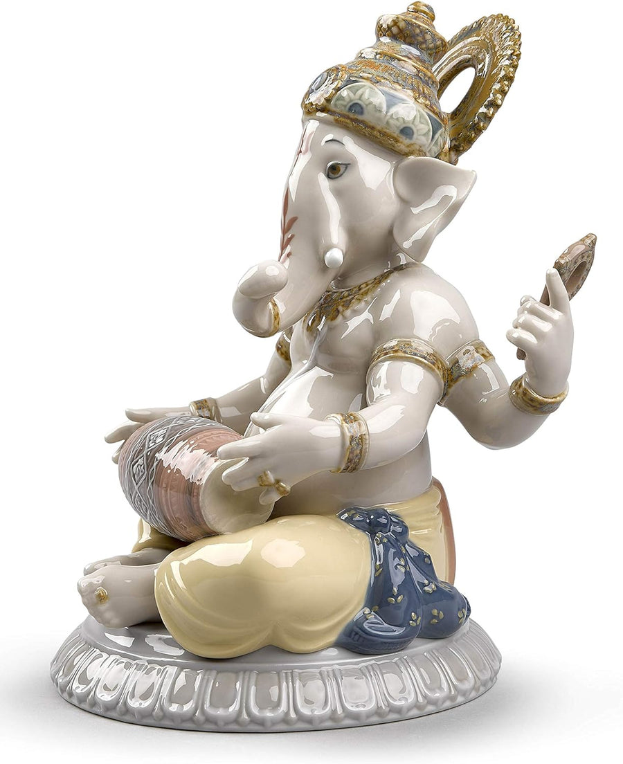 LLADRÓ Figur Ganesha Mit Mridangam. Ganesha. Porzellan.
