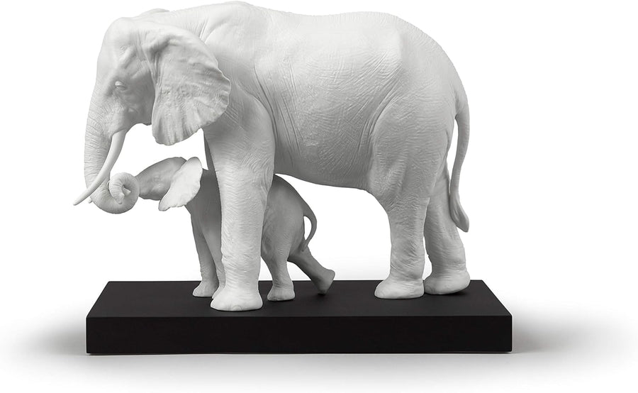 LLADRÓ Elefant-Skulptur Wir Treten In Deine Fussstapfen. Elefant. Porzellan.