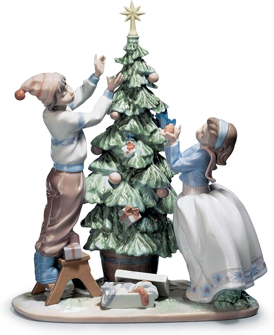 LLADRÓ Figur Den Weihnachtsbaum Schmücken. Weihnachtsbaum. Porzellan.