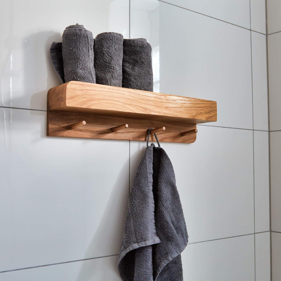 Natuhr Garderobe aus Holz Porter Regal Wand Flurgarderobe mit Ablage Eiche (40 cm Länge, Eiche geölt
