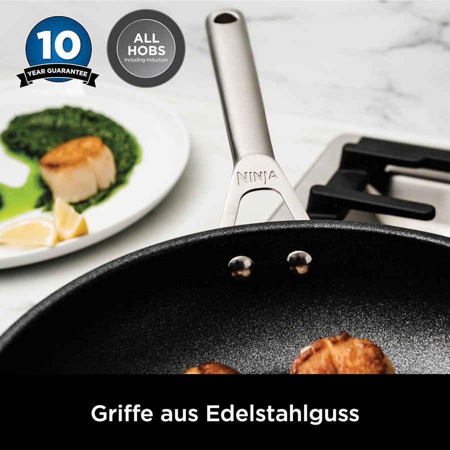 Ninja Foodi ZEROSTICK Edelstahl-Bratpfanne 26cm, langlebig, antihaftbeschichtet, induktionsgeeignet,