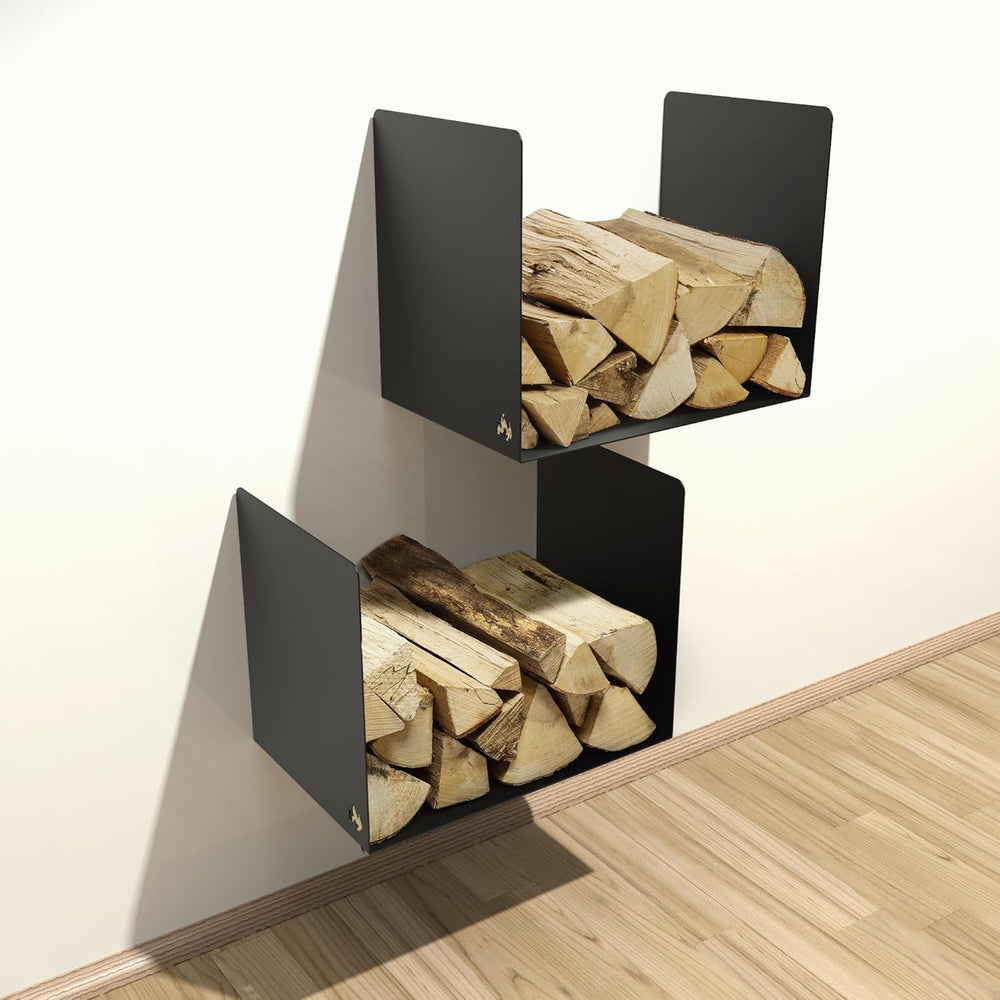 teileplus24 BHS3 Kaminholzregal Innen Aussen | Brennholzregal Metall | Wand-Montage | Kaminholzkorb
