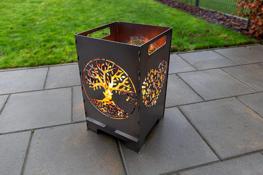 teileplus24 FT01 Feuertonne Feuerschale Feuerkorb Gross Eckig Steckbar Leichte Reinigung, Design:Hir