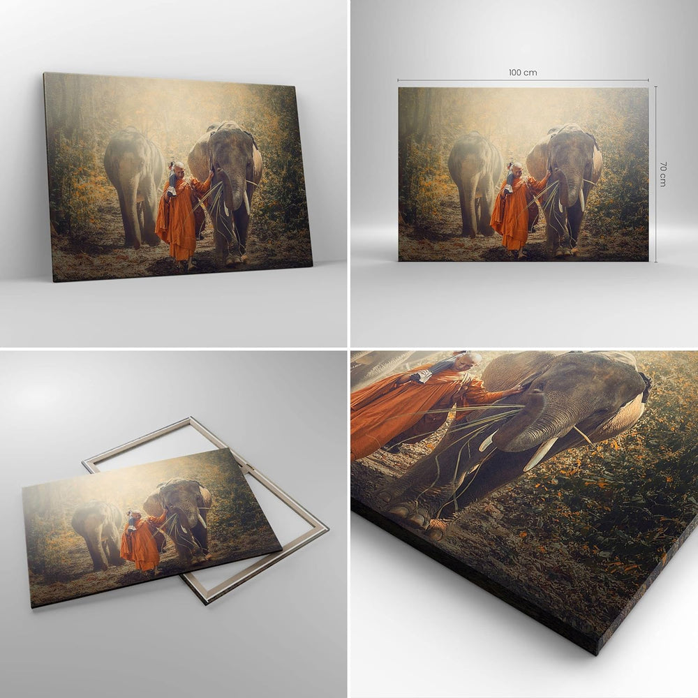 Bilder auf Leinwand 100x70cm Leinwandbild Elefant Mönch Dschungel Gross Wanddeko Bild Schlafzimmer K