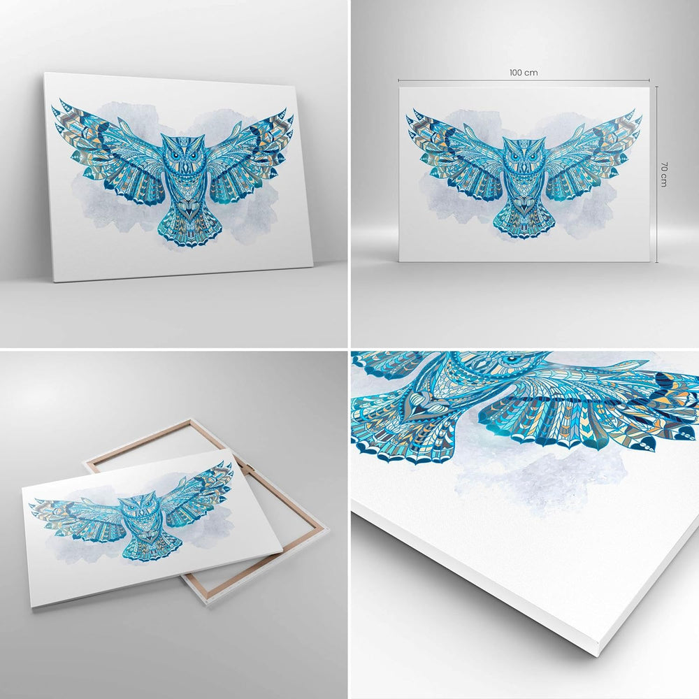 Bilder auf Leinwand 100x70cm Leinwandbild Eule Flügel Tierwelt Grafik Gross Wanddeko Bild Schlafzimm