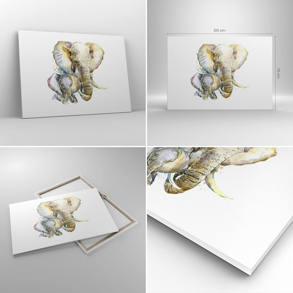 Bilder auf Leinwand 100x70cm Leinwandbild Elefanten Illustration Bunt Gross Wanddeko Bild Schlafzimm