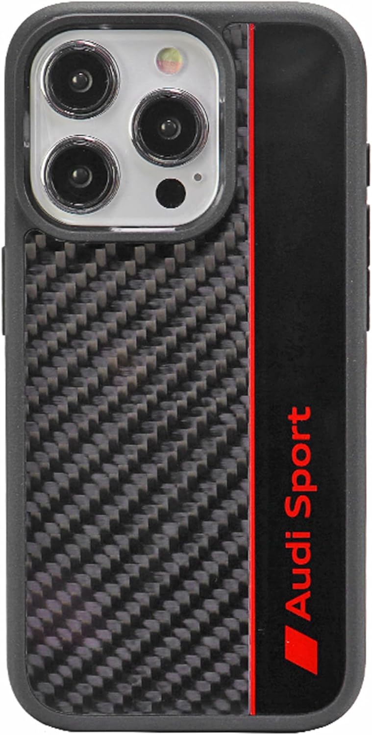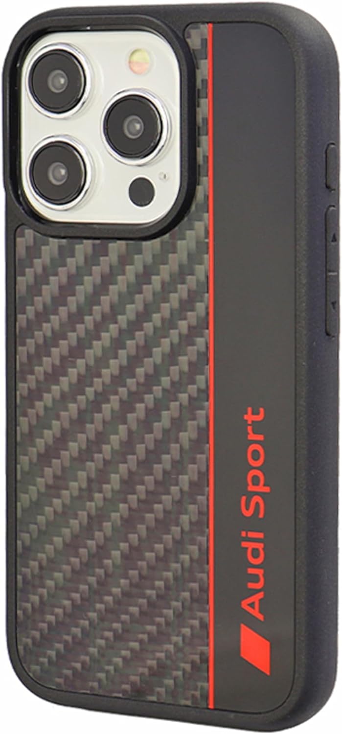 Audi Sport Handyhülle - Kompatibel mit iPhone 15 Pro - Stossabsorbierende Hülle mit Carbon - mit prä