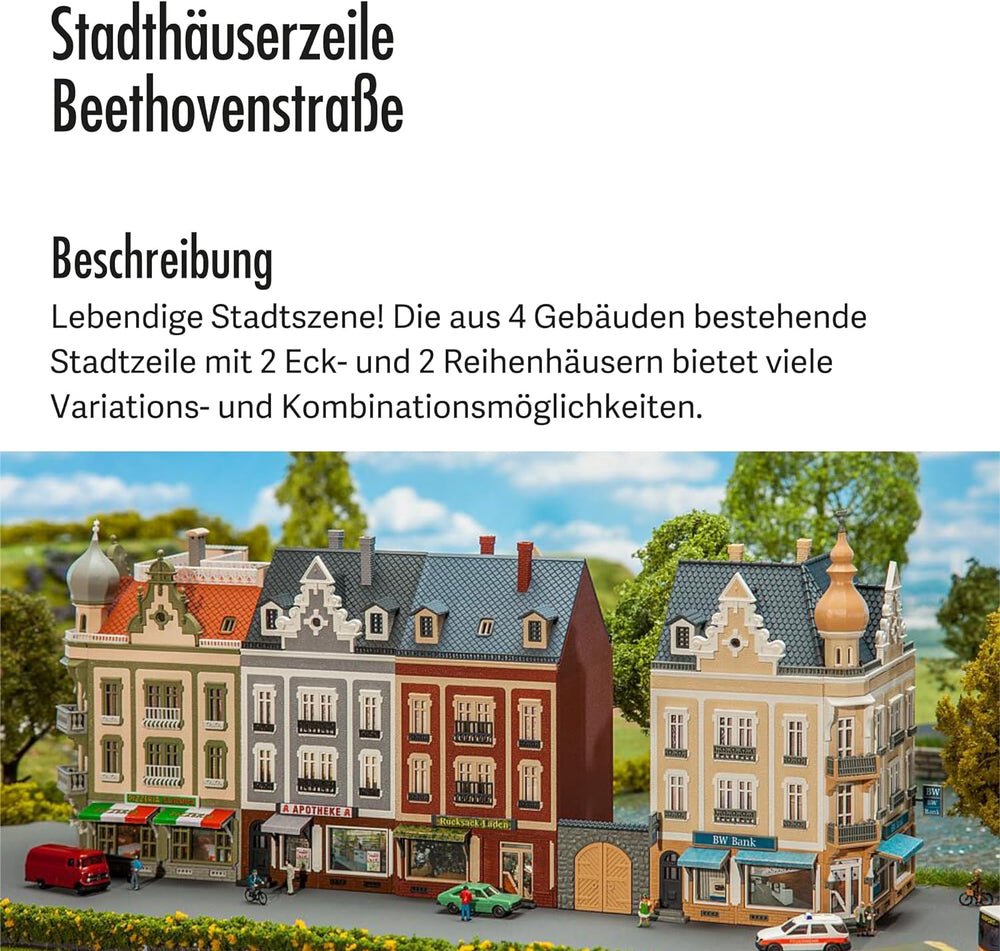 FALLER Stadthäuserzeile Beethovenstrasse Modellbausatz mit 1084 Einzelteilen 298 x 75 x 123 mm I Mod