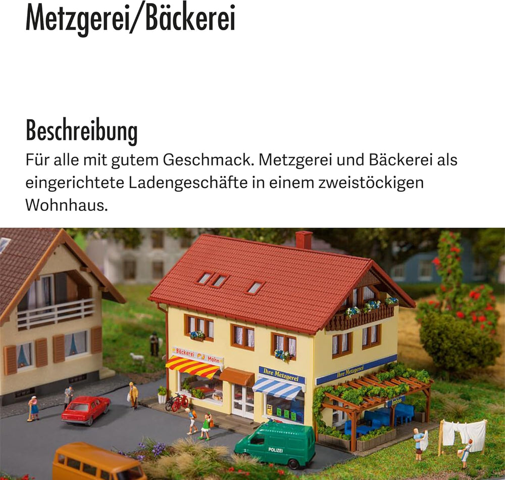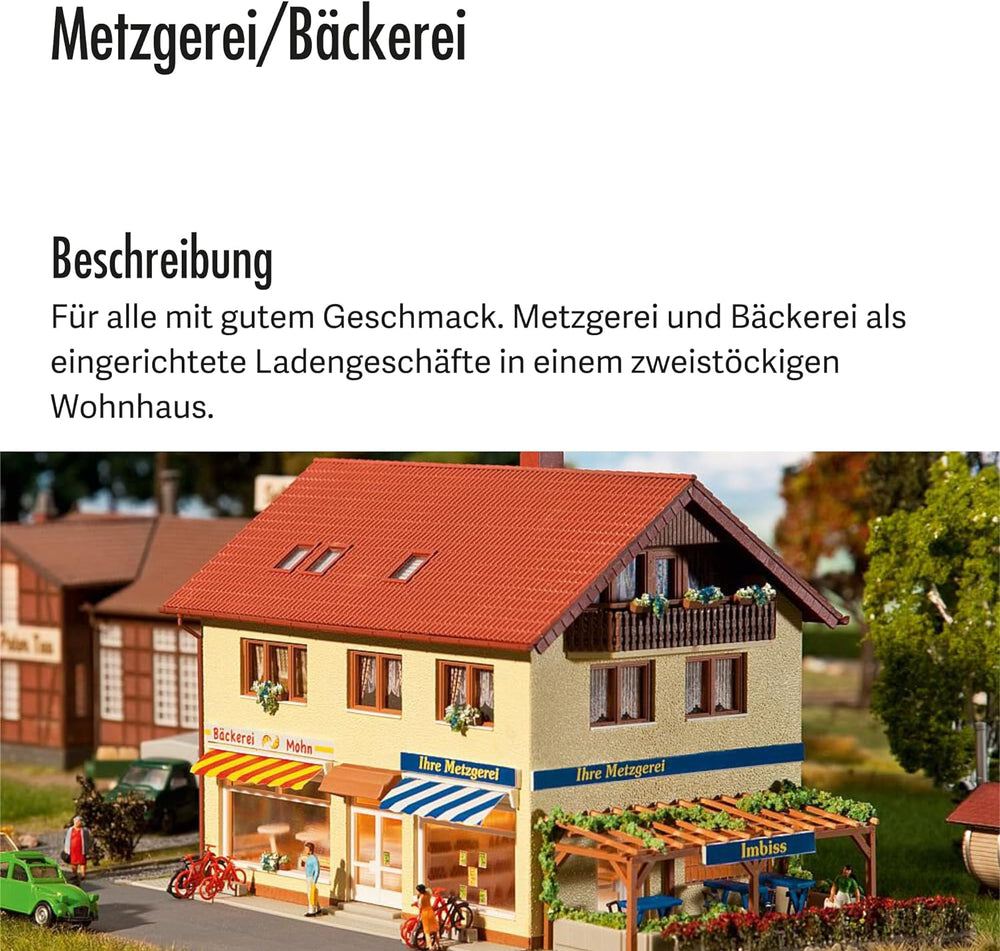 FALLER Metzgerei/Bäckerei Modellbausatz mit 569 Einzelteilen 190x125x125mm I Modelleisenbahn Zubehör