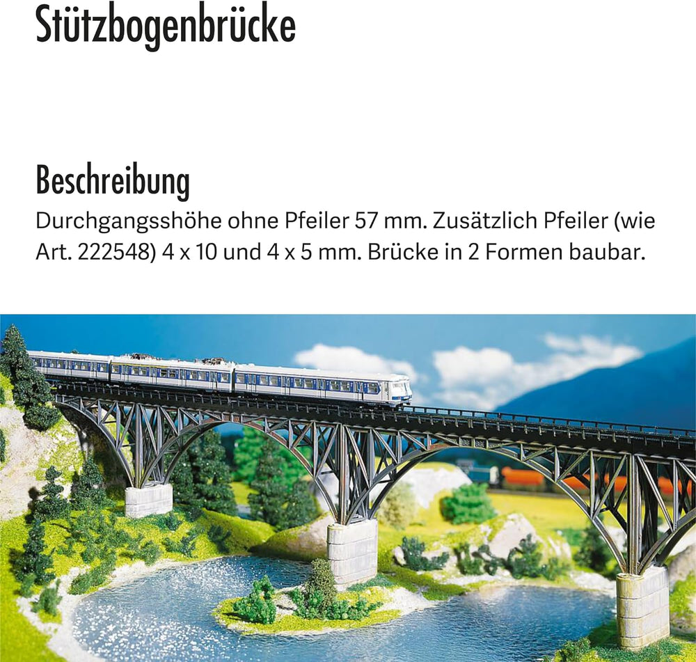 FALLER Stützbogenbrücke Modellbausatz mit 60 Einzelteilen 400 x 32 x 105mm I Modelleisenbahn Zubehör
