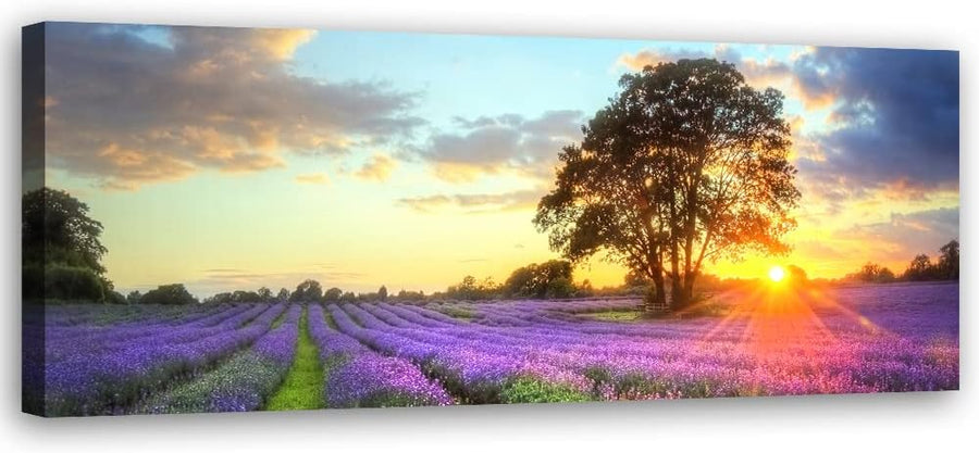 Feeby Bild auf Vlies Leinwand Natur Lavendelfeld Sonnenuntergang 120x40 cm Kunstdruck Modern Wandbil