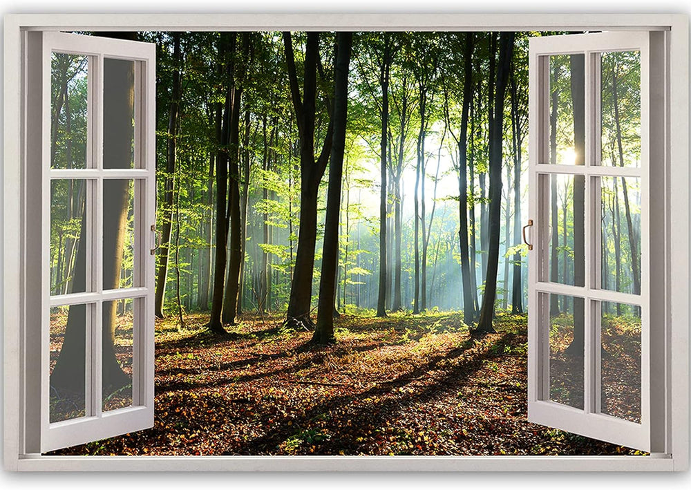 Feeby Bild auf Vlies Leinwand Offenes Fenster 3D-Illusion 90x60 cm Kunstdruck Modern Wandbilder Deko