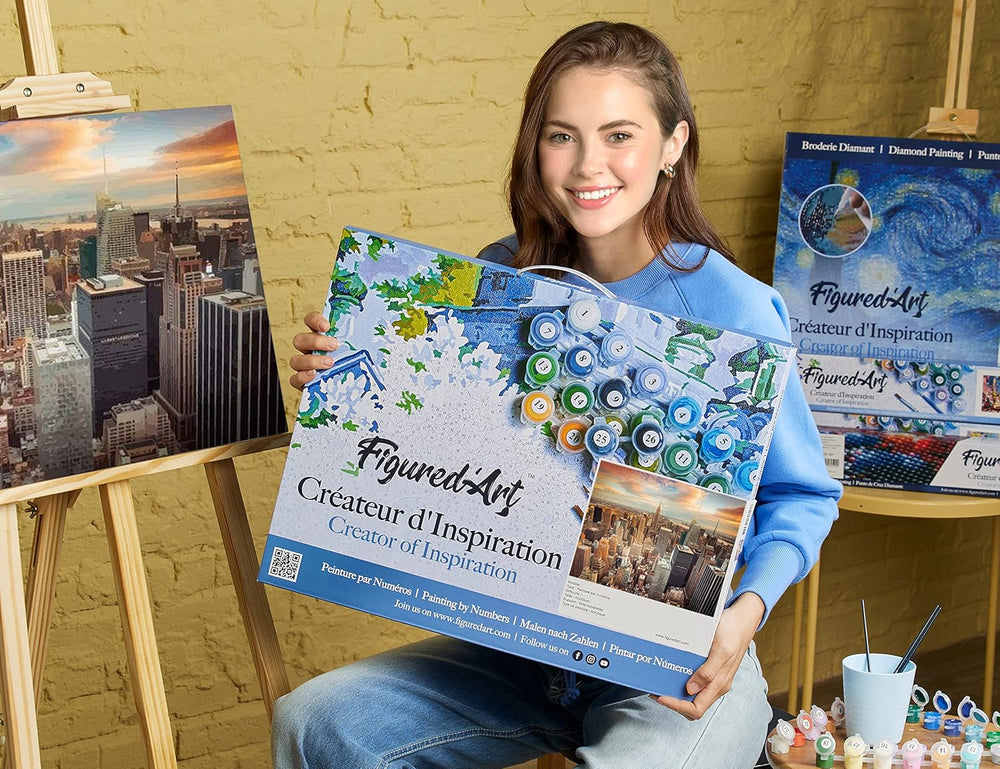 Figured'Art Malen Nach Zahlen Erwachsene Mit Rahmen Sicht und Blumen - Paint by Numbers Basteln DIY