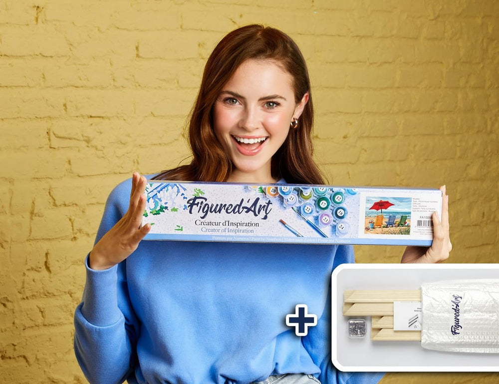 Figured'Art Malen Nach Zahlen Erwachsene Mit Rahmen Strandurlaub - Paint by Numbers Basteln DIY Bast