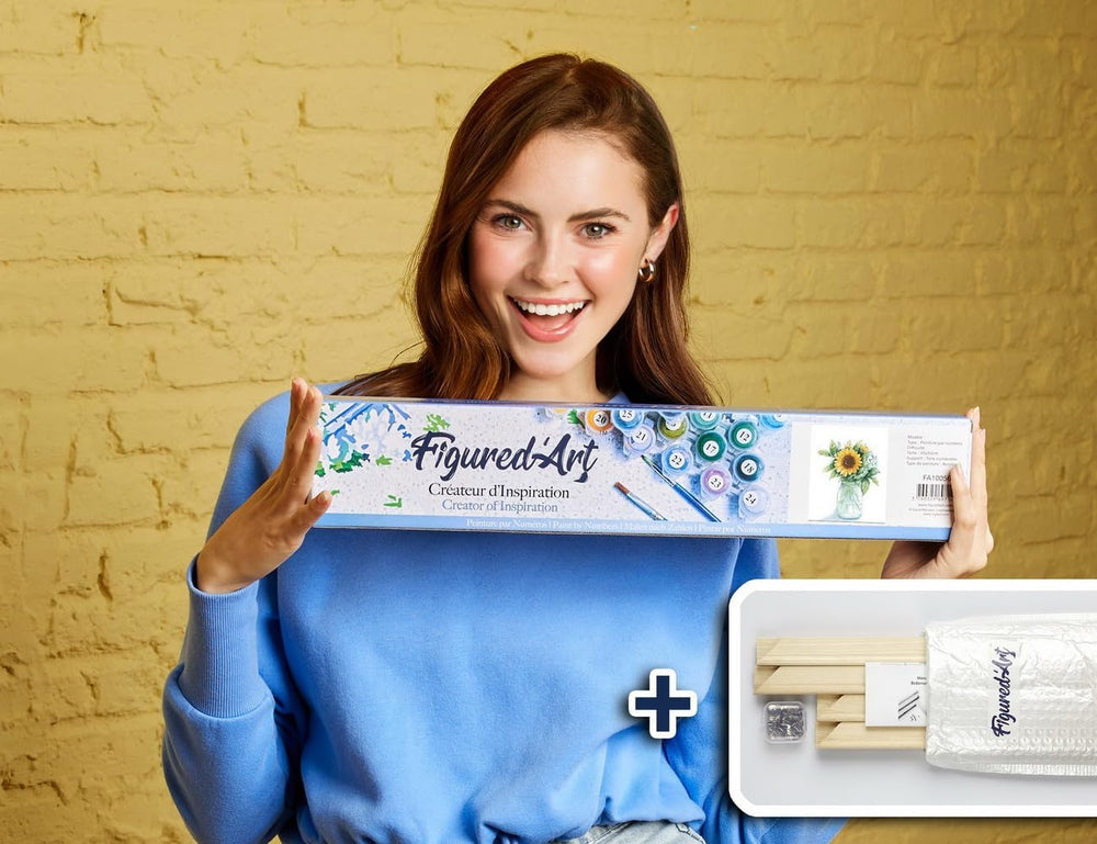 Figured'Art Malen Nach Zahlen Erwachsene Mit Rahmen Sonnenblumenstrauss - Paint by Numbers Basteln D
