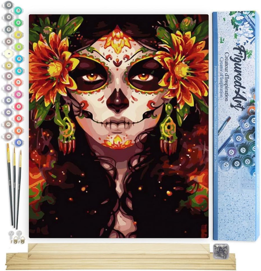 Figured'Art Malen Nach Zahlen Erwachsene Mit Rahmen Sitzende Art-Deco-Frau - Paint by Numbers Bastel