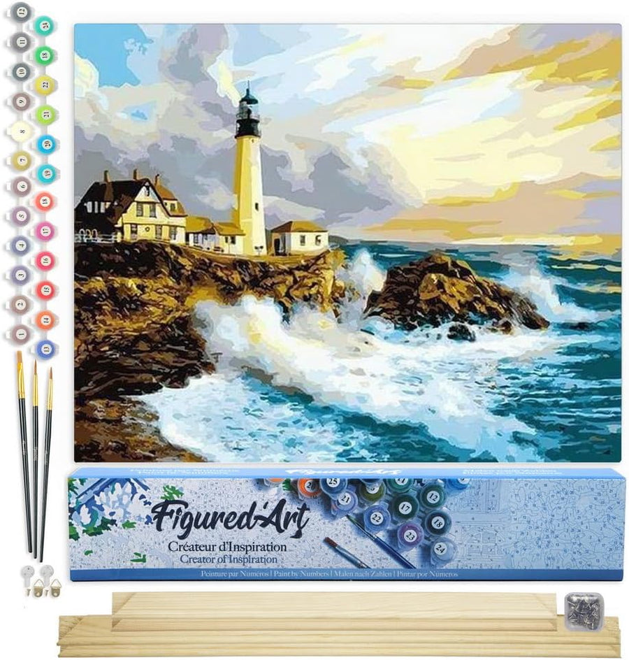 Figured'Art Malen Nach Zahlen Erwachsene Mit Rahmen Sturm in der Nähe des Leuchtturms - Paint by Num