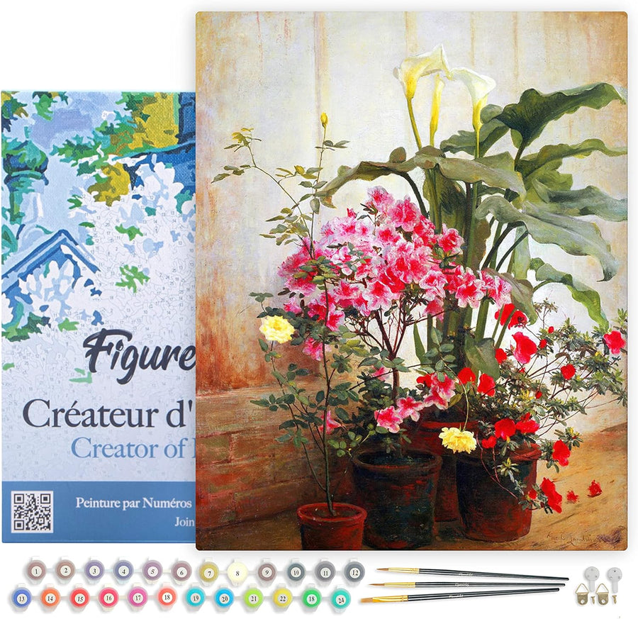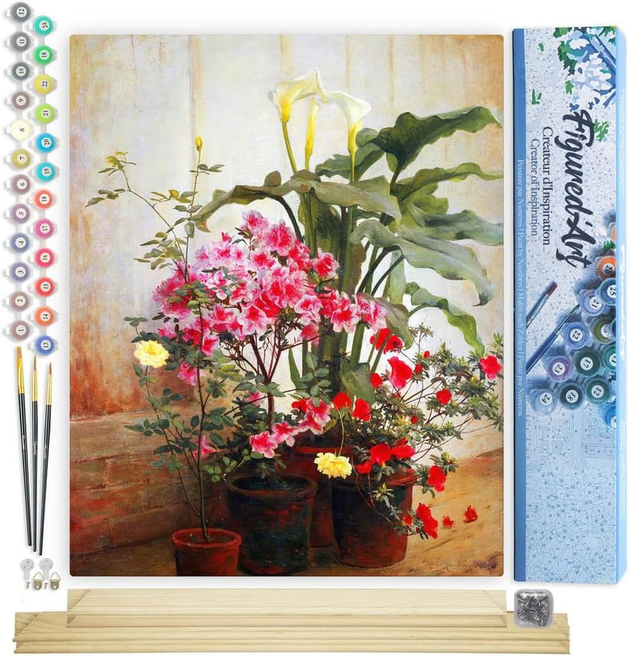 Figured'Art Malen Nach Zahlen Erwachsene Mit Rahmen Terrasse und Blumenstrauss - Paint by Numbers Ba
