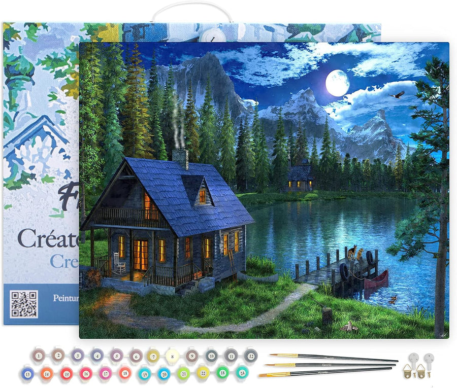 Figured'Art Malen Nach Zahlen Erwachsene Mit Rahmen See am Abend - Paint by Numbers Basteln DIY Bast