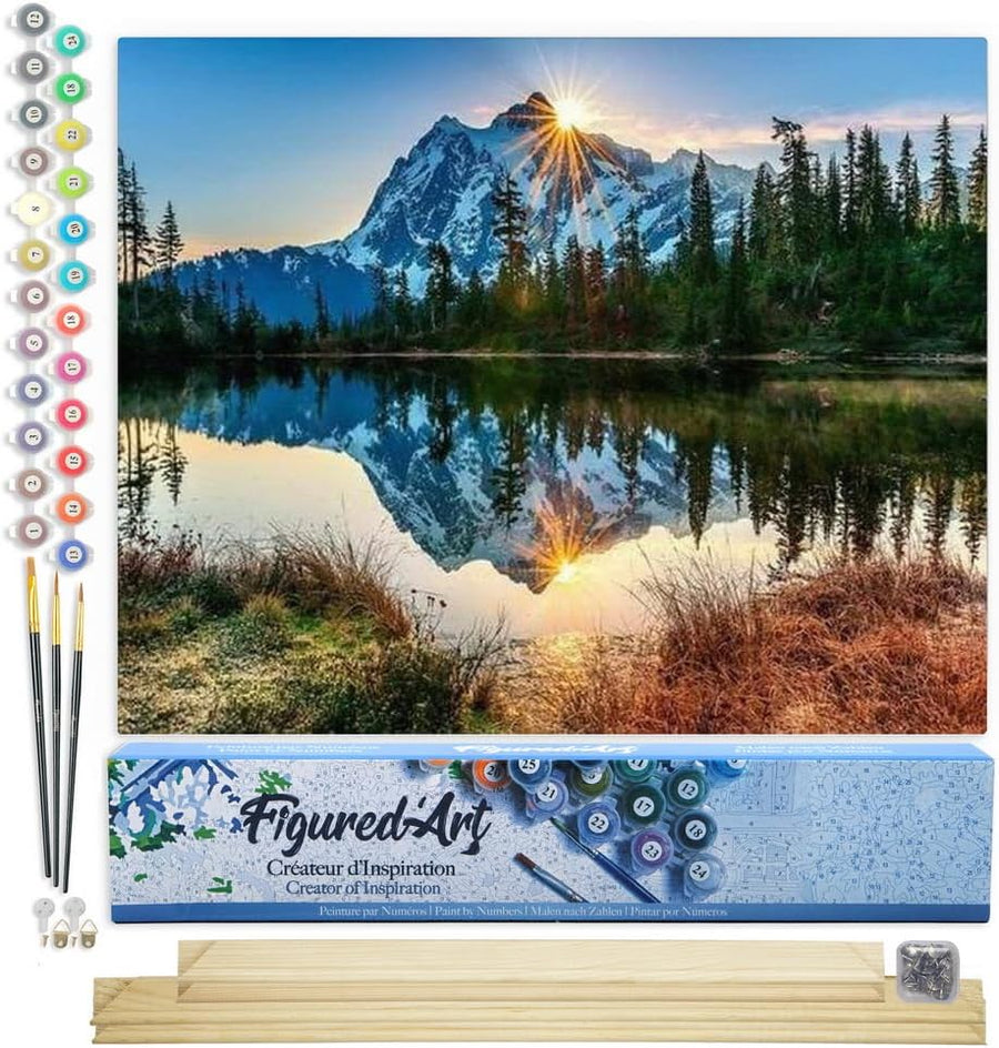 Figured'Art Malen Nach Zahlen Erwachsene Mit Rahmen See und gespiegelter Berg - Paint by Numbers Bas