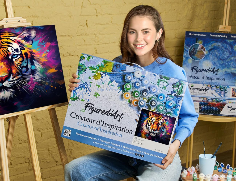 Figured'Art Malen Nach Zahlen Erwachsene Mit Rahmen Tiger Farbenfroh Abstrakt - Paint by Numbers Bas