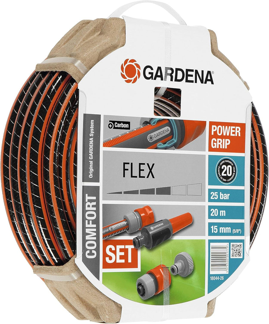 Set de manguera Flex Ø 15 mm Con 20 m de manguera, lanza y accesorios de riego.