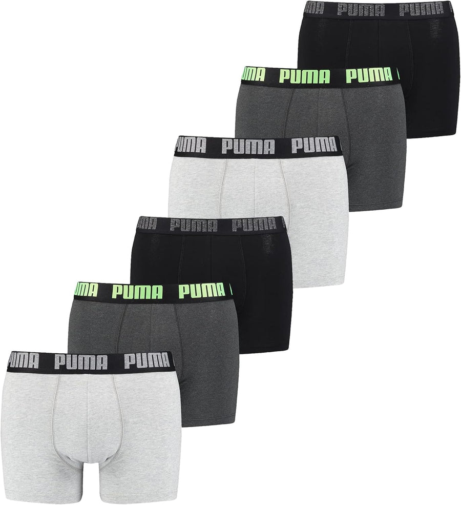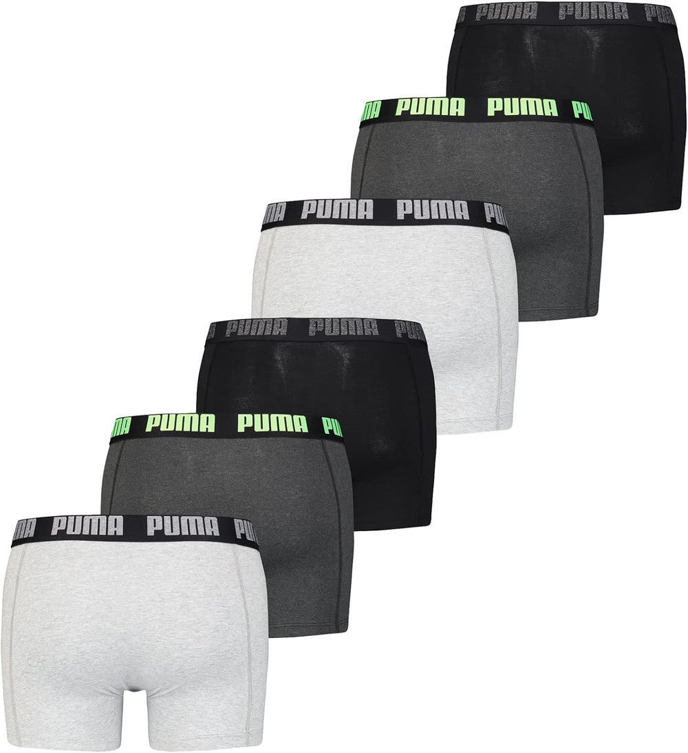 PUMA Herren Boxershorts Unterhosen 521015001 6er Pack, Farbe:Black / Green / Grey, Bekleidungsgrösse