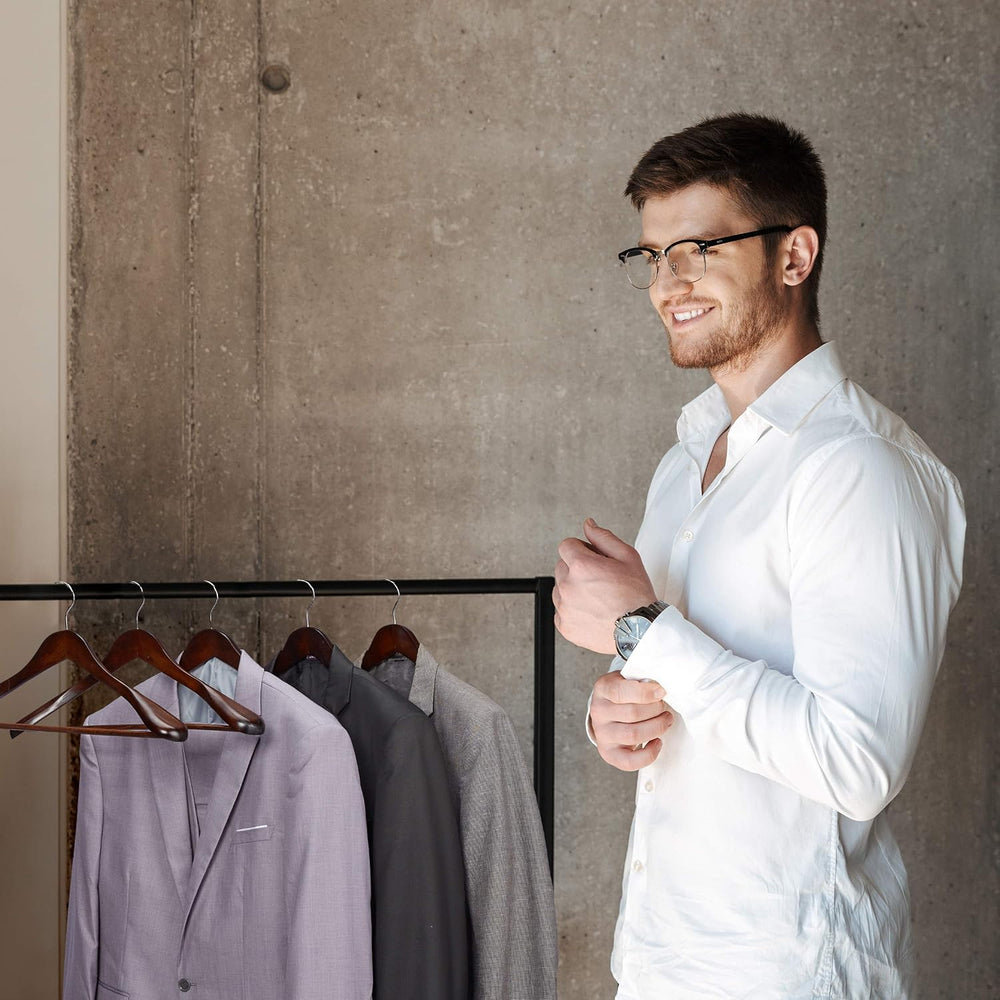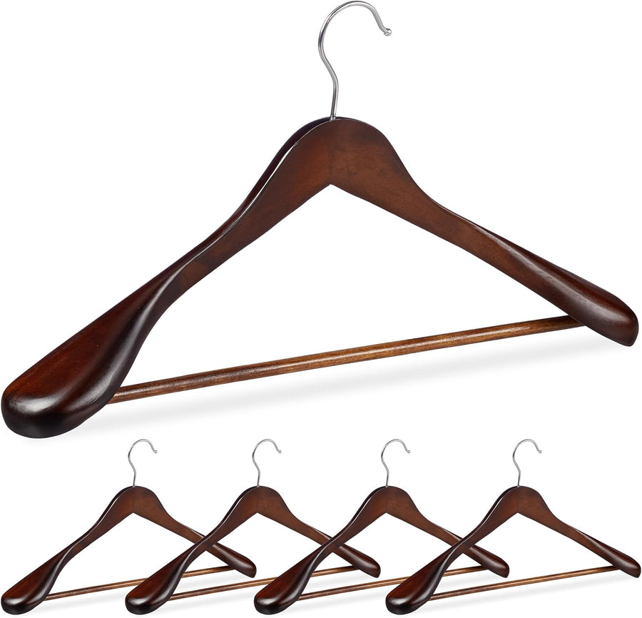 Relaxdays Anzug Kleiderbügel, 10er Set, breite Schulter, 360° drehbarer Haken, Kostüm, Jacken, Holzk