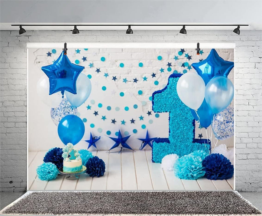 Renaiss 3x2m Kinder 1. Geburtstag Foto Hintergrund Papier Blumen Blaue Luftballons Holzboden Fotogra