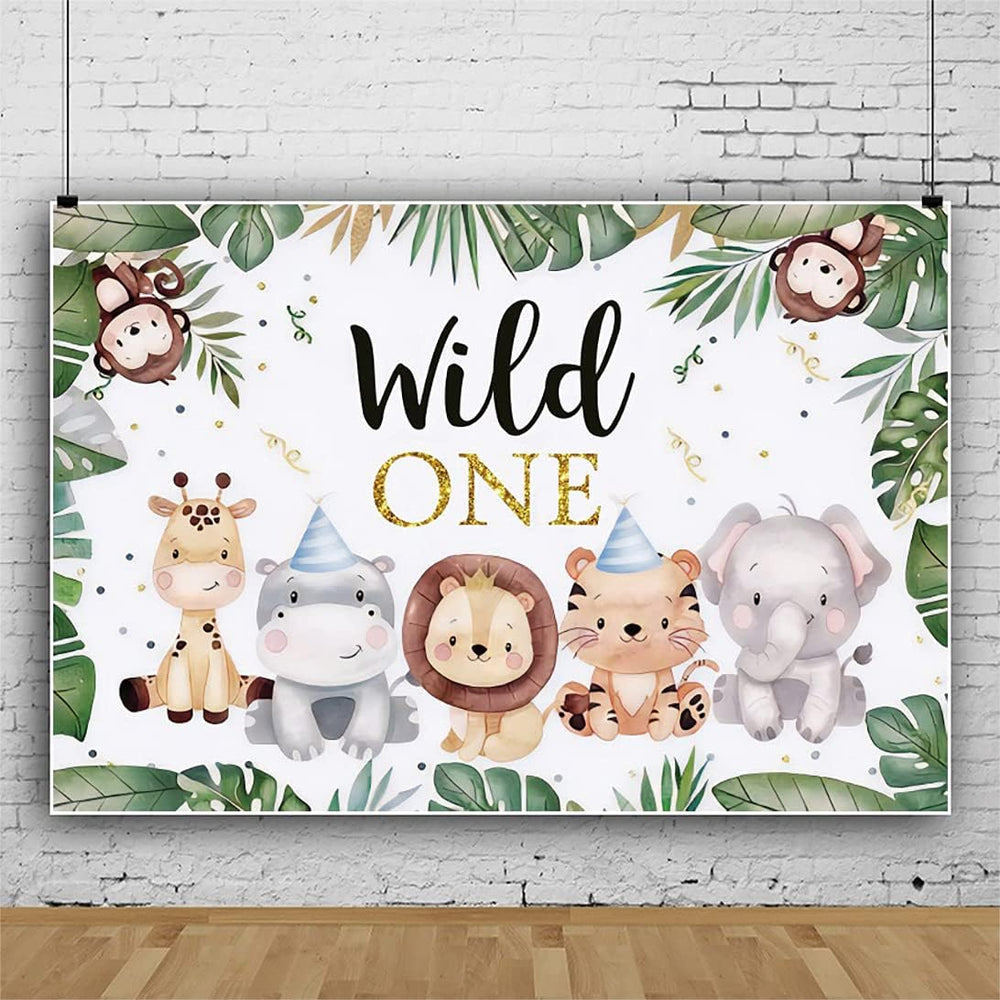 Renaiss 3x2m Dschungeltiere 1. Geburtstag Hintergrund Safaritiere Wild One Greenery Fotografie Hinte