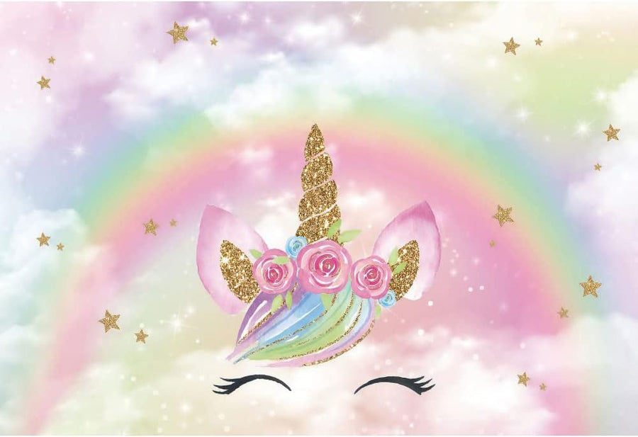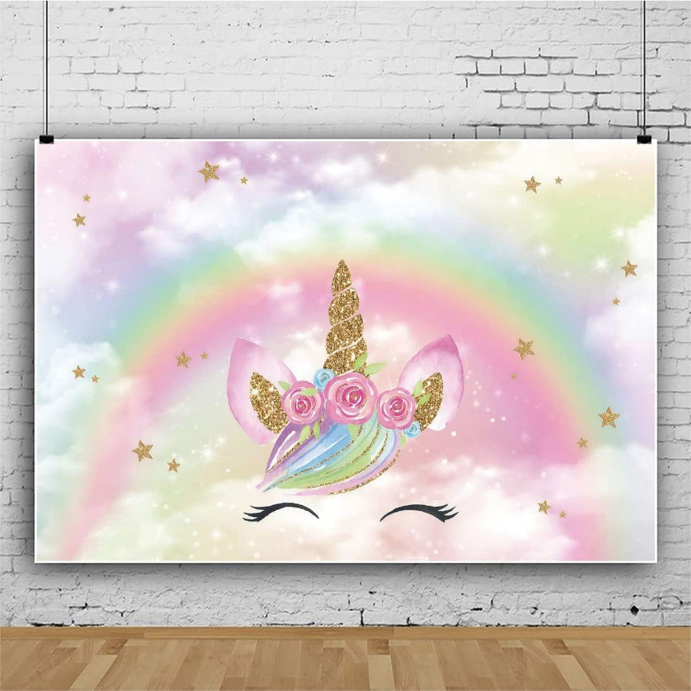 Renaiss 3x2m Einhorn Regenbogen-Himmel Hintergrund Bunte Wolken Goldene Sterne Fotografie-Hintergrun