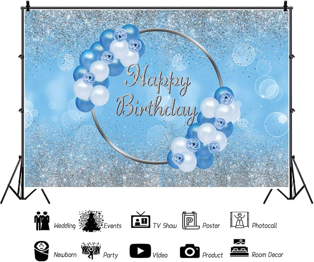 Renaiss 3x2m Blau und Splitter Alles Gute zum Geburtstag Hintergrund Splitter Glitzer Funkeln Ballon